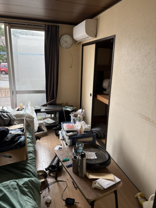 - 仙台市太白区八木山にあるアパートにて、U様よりゴミ屋敷清掃および不用品回収のご依頼をいただきました。今回の現場は1Kのアパートで、介護施設への入居をきっかけに長期間空室となっていたお部屋の片付けが必要なケースでした。