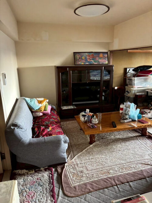 仙台市宮城野区高砂のマンションにて、I様より遺品整理および不用品回収のご依頼をいただきました。今回のご依頼は、長年住まわれていたお母様が他界されたことをきっかけに、住まいの整理が必要になったケースです。お母様は約30年間こちらのマンションで生活されており、室内には長年の生活用品や家具が数多く残っていました。